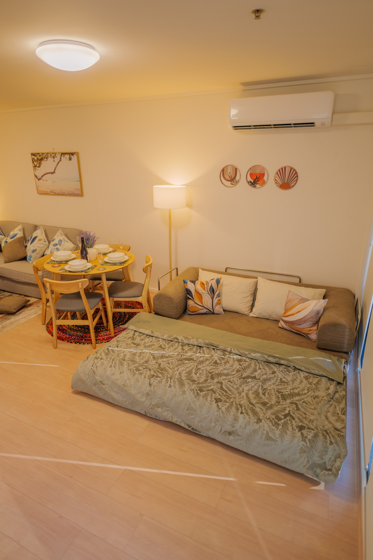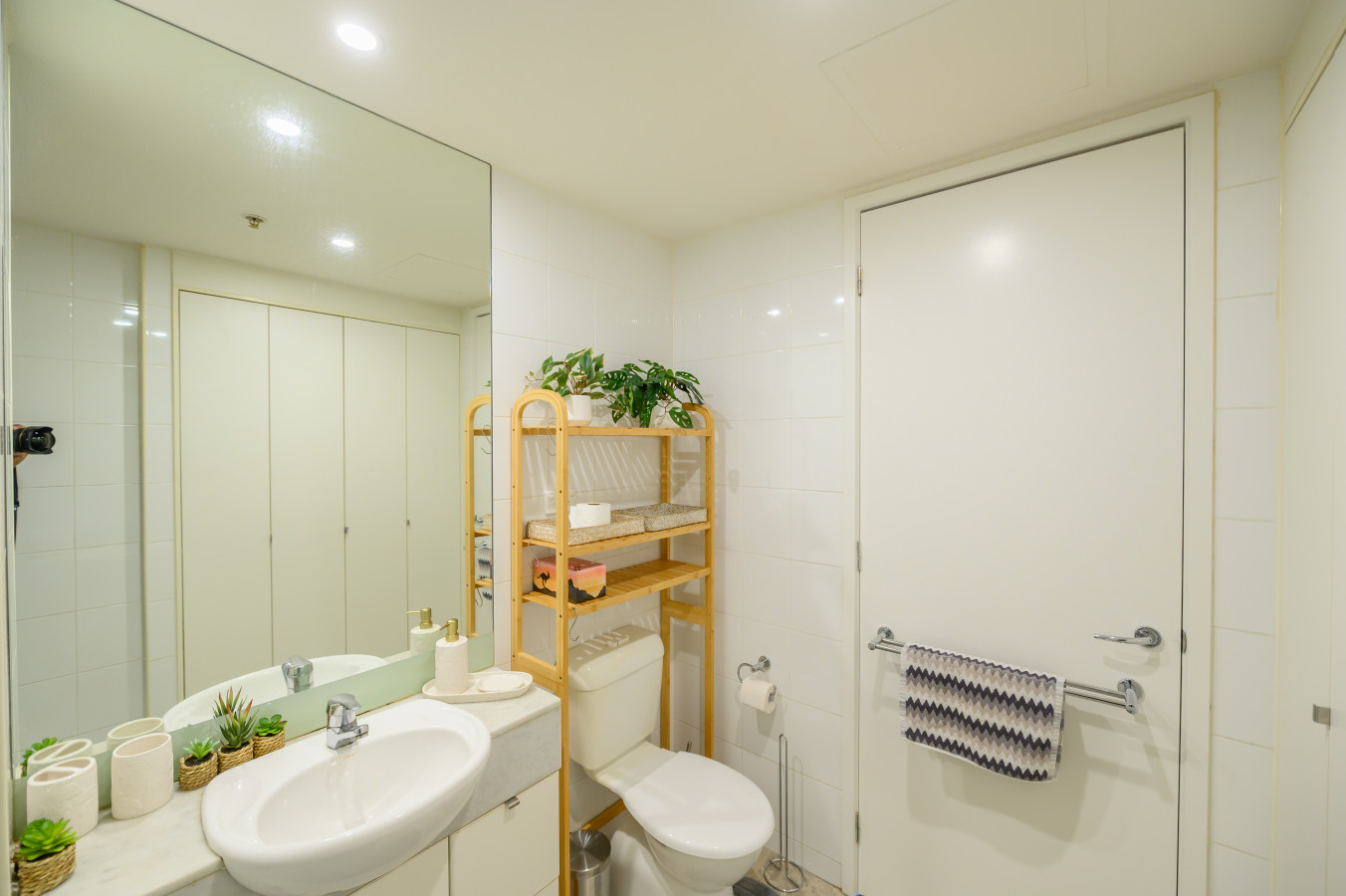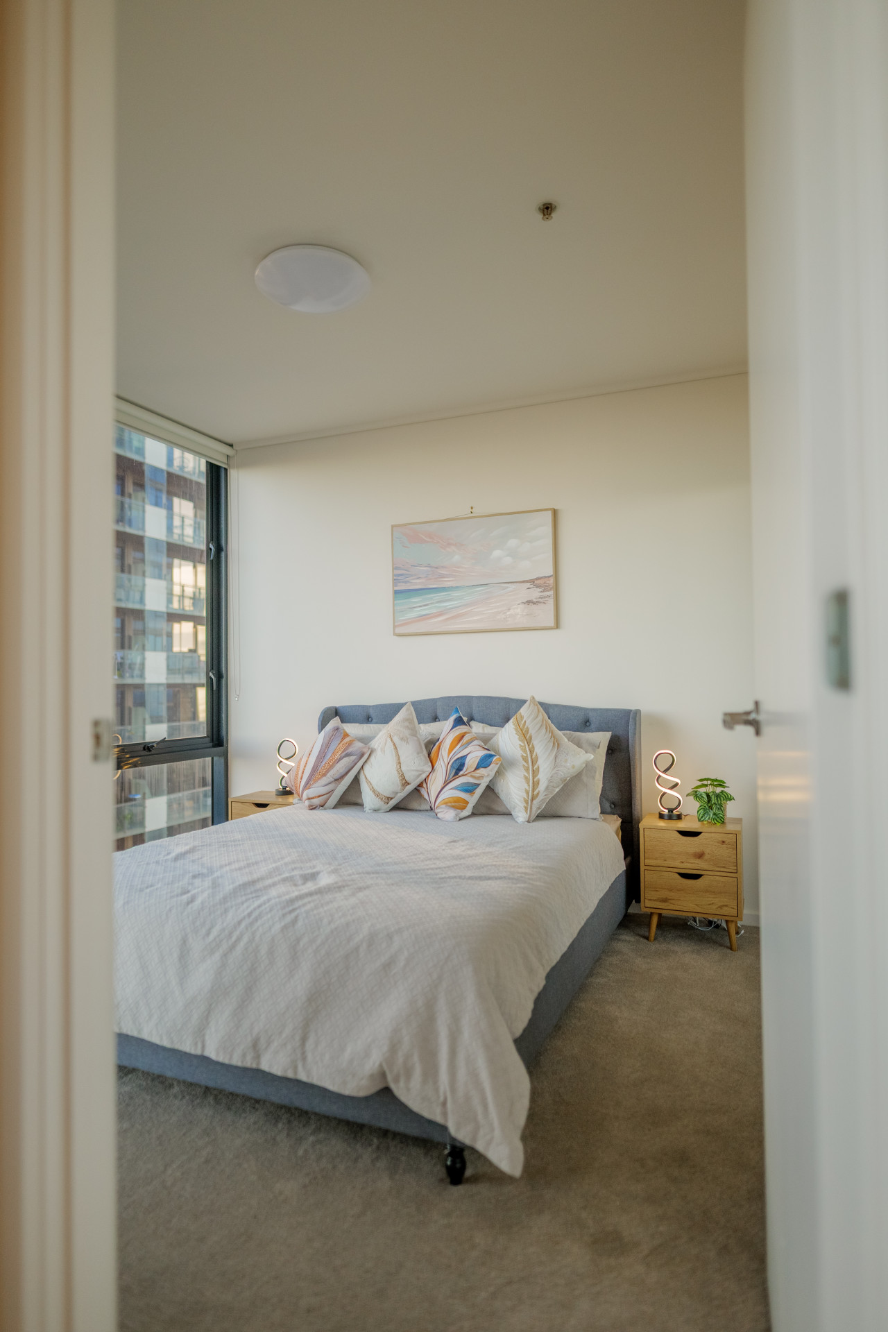 A very pleasant and comfortable stay Positive: The owners of the property have done an amazing job in creating an elegant and comfortable space. The apartment is beautifully decorated. You can tell a lot of thought went into creating a comfortable stay. A few touches I really appreciated: games for families to play, iron/ironing board, plenty of kitchen utensils (although would recommend a pasta strainer), lint roller, tennis rackets/balls, hair dryer, salt & pepper, clothes drying rack, coffee machine and pods, body wash, plenty of toilet paper which was needed, vacuum, washing machine and dryer. There was plenty of bedding and pillows which were nice and clean. The owner checked in on us via message and was easily contacted if needed assistance. I would definitely recommend this apartment and would consider staying here again. Negative: The bedroom and bathroom doors squeaked which kept disturbing our son who was sleeping on the fold our coach every time we needed to leave our room in the evening or during the night.